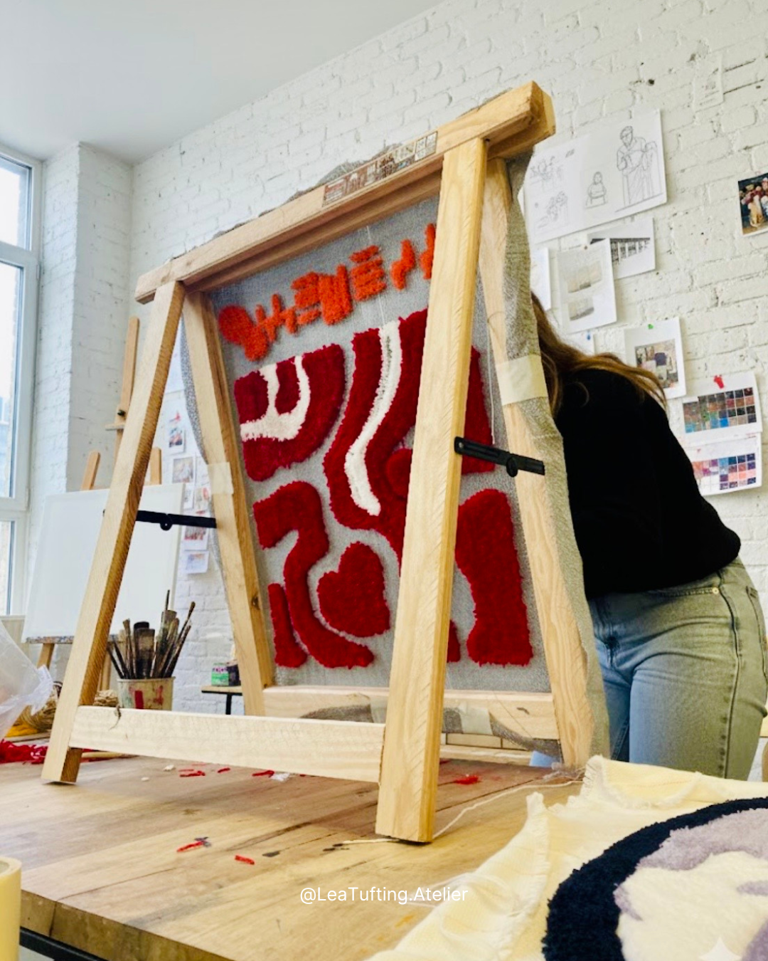 En parallèle, je développe une pratique plus personnelle autour du dessin et du textile, notamment à travers le tufting, où le rapport à la matière et au geste occupe une place essentielle.